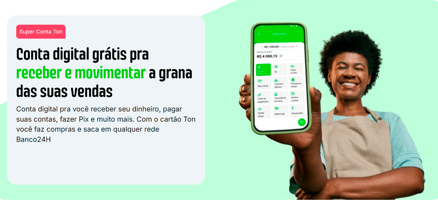 Desejam uma conta digital para receber suas transações. (A ton tem conta grátis)