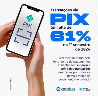 Transações via PIX têm alta de 61% no 1ª semestre de 2024, superando a soma das transações realizadas por todos os demais meios de pagamento no período.