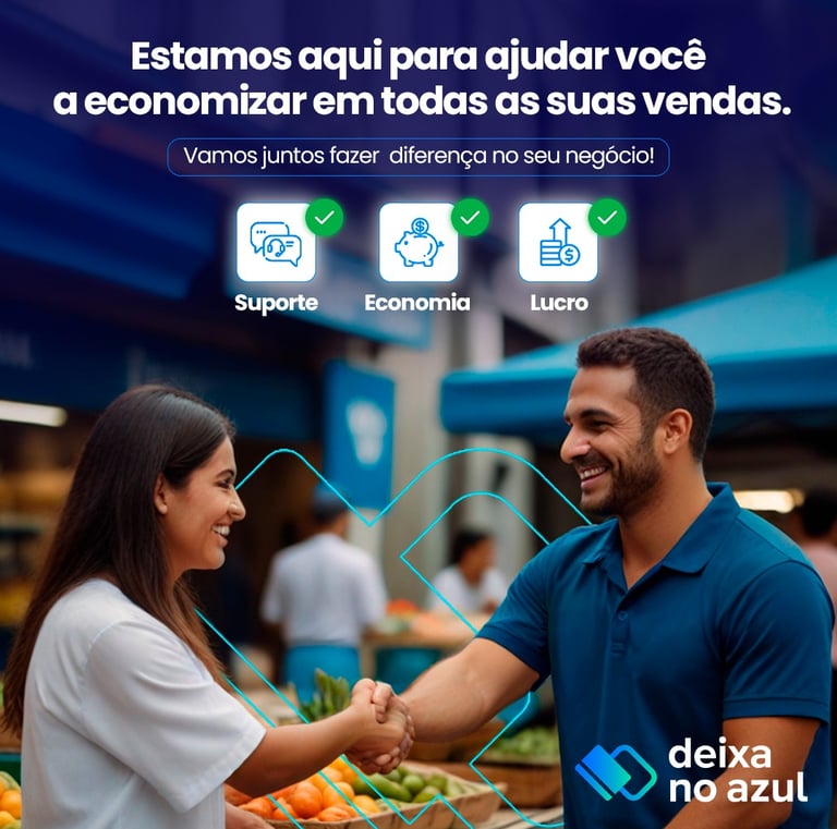 Somos mais que uma solução de pagamentos, oferecemos valor real para o seu negócio. Com a maquininha Deixa no Azul, disponibilizamos produtos financeiros que vão além de simples descontos em taxas, proporcionando vantagens significativas que fazem a diferença no seu dia a dia.