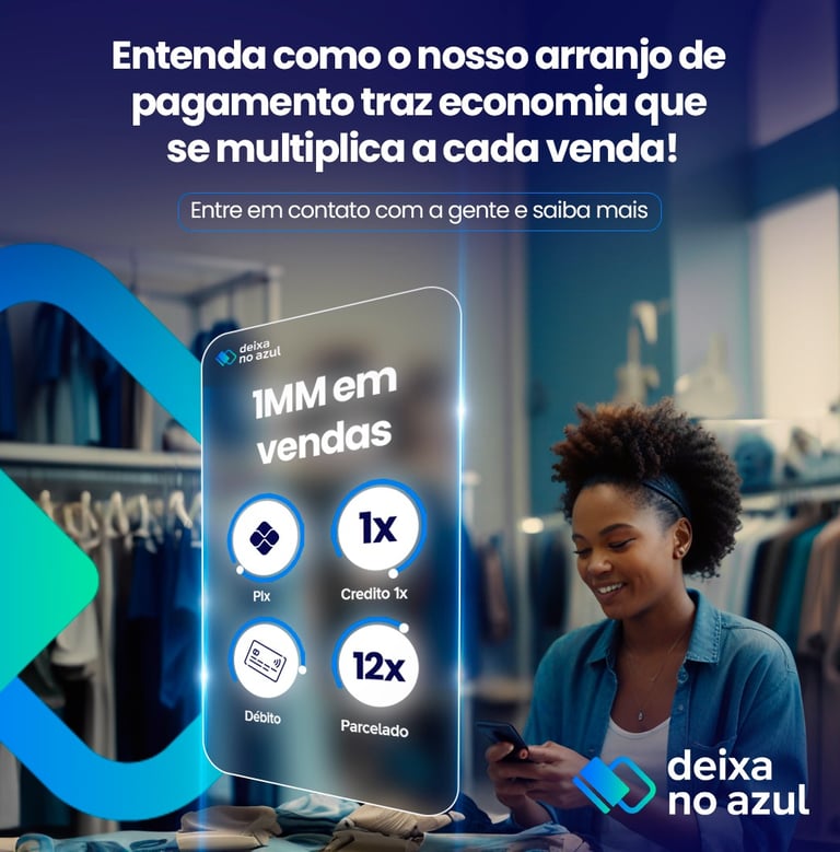 Somos a solução de pagamentos que vai além das taxas. Com a maquininha Deixa no Azul, oferecemos produtos financeiros que proporcionam mais valor do que qualquer desconto de taxa disponível no mercado.
